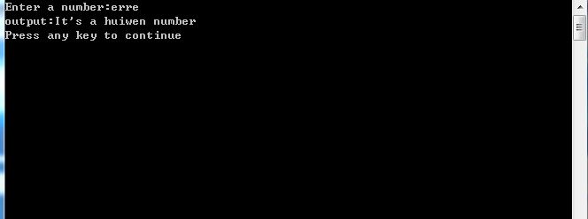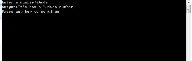 编写一个程序,判断输入的字符串是否为回文;所谓“回文”指字符串从左向右读取的结果与从右向左读取的结果相同。程序结果中第一行“Enter a number:”为固定输入,后接输入的字符串;第二行:“output:”为固定输出,后接判断结果;若为回文,则输出"It's a huiwen number";若不为回文,则输出"It's not a huiwen number"