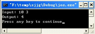 一个旅行社要从n名旅客中选出一名幸运旅客,为他提供免费环球旅行服务。方法是,大家站成圈,然后选定一个m,从第1个人开始报数,报到m时,这个人OUT,然后从下一个人开始重新从1报数,重复这个过程,直到最后剩下一个人就是幸运之星。问题就是谁是幸运者呢?图示中10 3是键盘输入的,表示10名旅客,报到3时OUT。