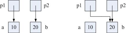 有如下语句int a=10, b=20, *p1, *p2; p1=&a; p2=&b; 如左图所示;若要实现右图所示的存储结构,可选用的赋值语句是( )。